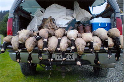 Canada Geese, MallardsTo provide the best opportunity to shoot your limit, we use top of the line decoys, and pit blinds. We have amphibious vehicles to access the best locations. Waterfowl season opens the first or second weekend of October, and runs through mid-January. Modoc Waterfowl Outfitters specializes both in Canada Goose and Mallard hunting. We have over 20,000 acres of waterfowl properties. These properties consist of about 350 acres of grain fields farmed for wildlife. We have developed flooded grain fields for early season duck hunting. You will have the opportunity to hunt over clover and alfalfa fields, wild meadows, small farm ponds, and large reservoirs. The Pit River runs through the middle of our home ranch. In the coldest months, we target mallards and honkers on some of our geothermal or "hot-ponds". Past hunters have told me that these are some of the finest hunts of their life. Hunting LocationsModoc Waterfowl Outfitters is based out of Alturas but hunts all over Modoc County. We have property from Davis Creek to Cedarville, including property that borders the closed zone of the Modoc Refuge. EquipmentWe have 2 amphibious vehicles to get us and our gear to the best locations. One 8x8 Argo with floating trailer and one Max 6x6 to transport hunters. We have placed 28-4 man blinds in key locations throughout Modoc County. For larger hunting parties, we have 8-10 man blinds in out best grain fields. We hunt over top of the line decoys. Each decoy is flocked, air brushed, and put in its own storage bag. Decoys such as Drop Zone Elites, Green Head Gear, and Dave Smith. Best Time of the YearFrom start to finish we have great success. We have lots of local honkers and ducks in October and November. December and January, migration birds come through. Be prepared for success anytime of the season. It's my responsibility to target food sources of birds to produce limited-out-hunts. Waterfowl ProcessingAfter a full day out, or a limited day, I take my hunters into the Sports Hut. Here the birds are picked, prepared table ready, and then frozen or left fresh. For worthy specimens to be taken to a taxidermist, these birds will be frozen. Picking fees are the responsibility of each hunter.